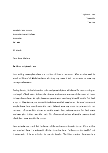 Formal Letters Of Complaint Teaching Resources